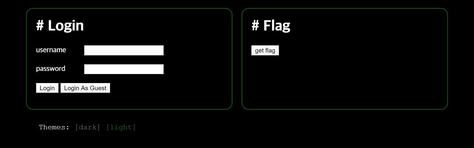 We can access to very simple web service. You can Login, get Flag, and change the Theme of the service. After many tries in JWT Token Attack, I found the SSTI at the 404 page.