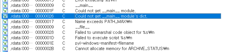 Python 에서나 볼 법한 __main__, __file__ 등이 눈에 띄었고 Py* 로 시작하는 문자열이 많았다. Python을 exe로 변환시켜주는 py2exe 를 알고 있었기 때문에 Python 코드를 PE로 변환시킨 프로그램임을 유추할 수 있었다.