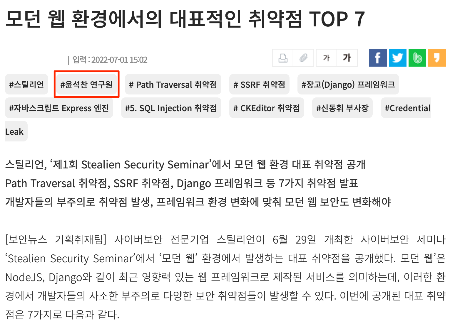 보안뉴스에 제 이름으로 기사가 실렸습니다 👏👏