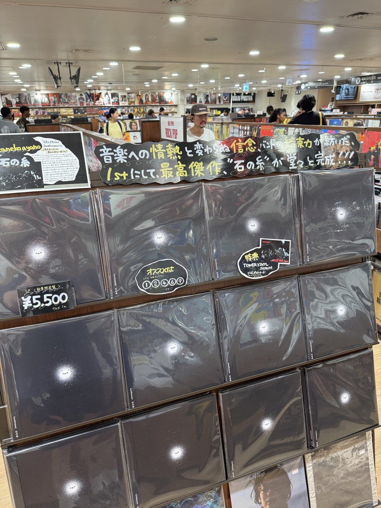 저는 일본 인디/밴드음악을 좋아해서, 항상 일본에 오면 시부야에 있는 타워레코즈 타워는 꼭 방문하는 편입니다. 이번 타워레코즈 방문의 가장 큰 목적은 바로 카네코 아야노(カネコアヤノ)의 가장 최근 발매된 작품인 「石の糸」 (한국어로는 '돌의 실') 앨범을 사는 것이었습니다. 이 「石の糸」 앨범은 카네코 아야노가 결성한 밴드 'kanekoayano'의 첫 정규 앨범으로서, 복합적이고 웅장한 사운드가 특징입니다. 카네코아야노의 팬이기에 이번 앨범도 놓칠 수가 없었네요 ㅎㅎ; CD와 Vinyl 둘 다 구매했습니다.