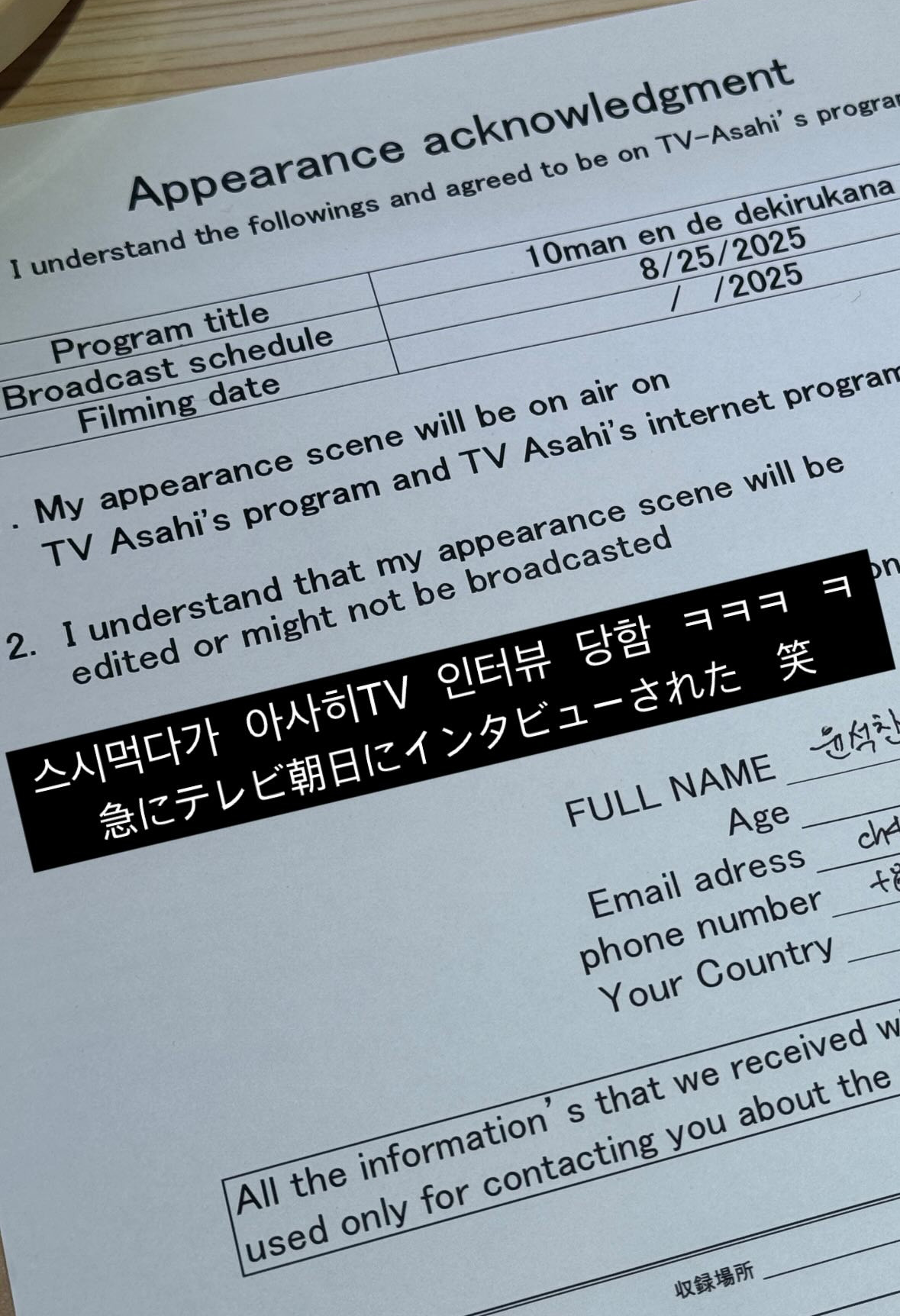 아사히 테레비 인터뷰