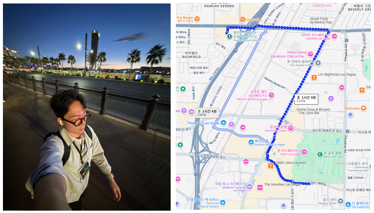 간단한 전략 회의 겸 DEF CON 설명회가 끝난 뒤에는 같은 방을 쓰는 랩실 형이 교수님과 Sphere 관광을 한다고 해서 우버를 같이 타고 Sphere에 갔고, 호텔까지 걸어오면서 라스베가스를 산책했습니다. 거의 5km 정도를 산책했는데, 이상하리만치 땀이 정말 적게 나서 상쾌하게 라스베가스의 밤을 구경했습니다.
