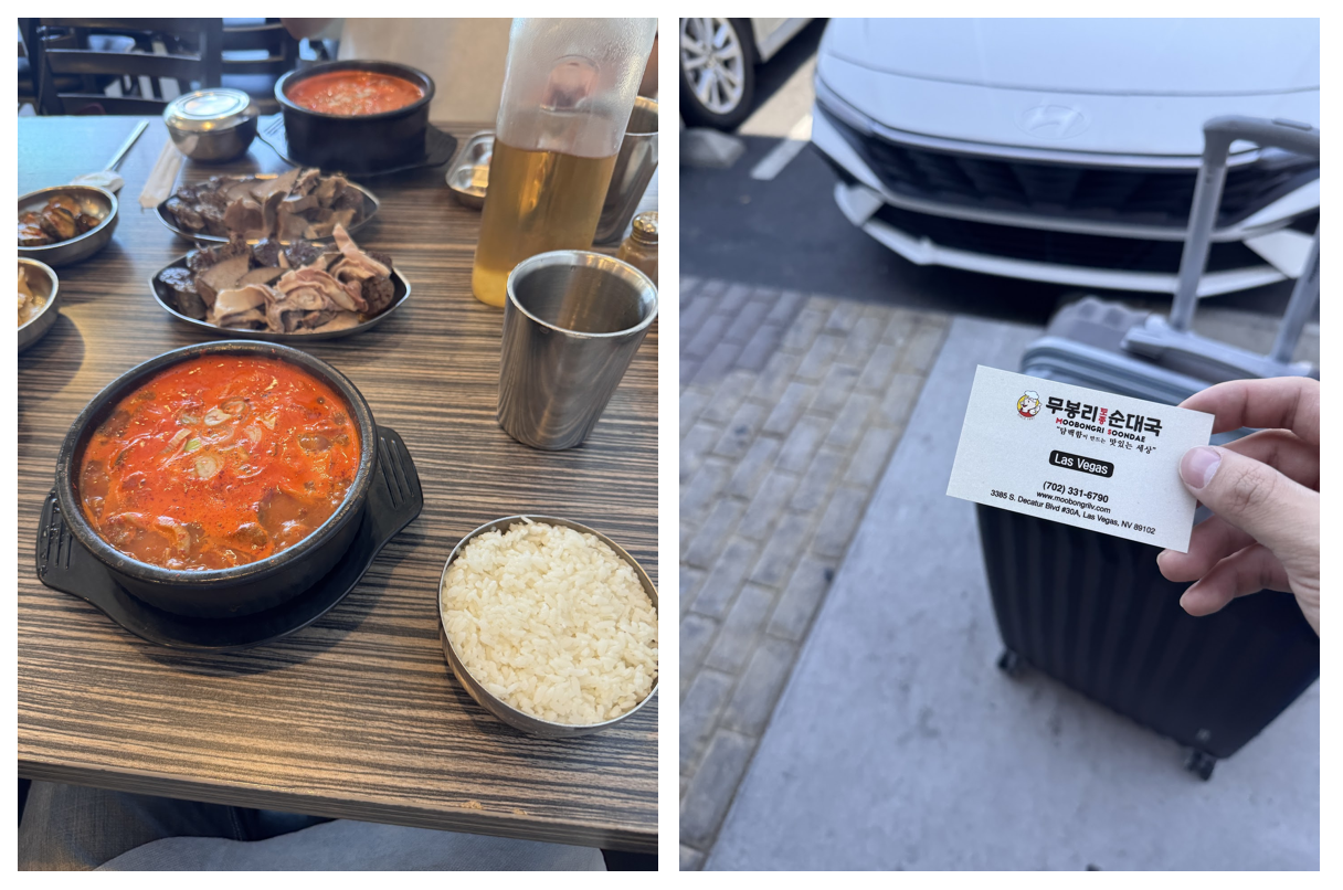 라스베가스에서 마지막 식사로 무봉리순대국이라는 가게에 가서 매운 순대국을 먹었습니다.