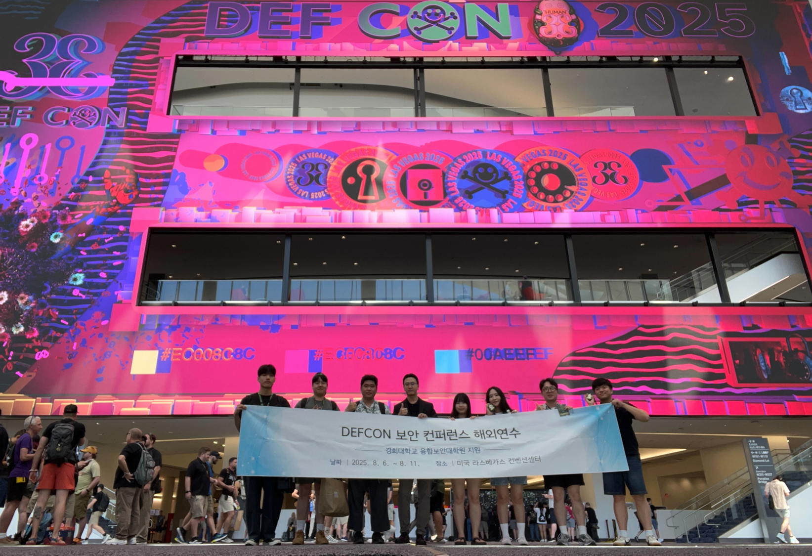 둘째날에는 데프콘 행사가 개최되는 라스베가스 컨퍼런스 홀에서 교수님, 랩실 분들과 단체 사진을 찍었습니다.