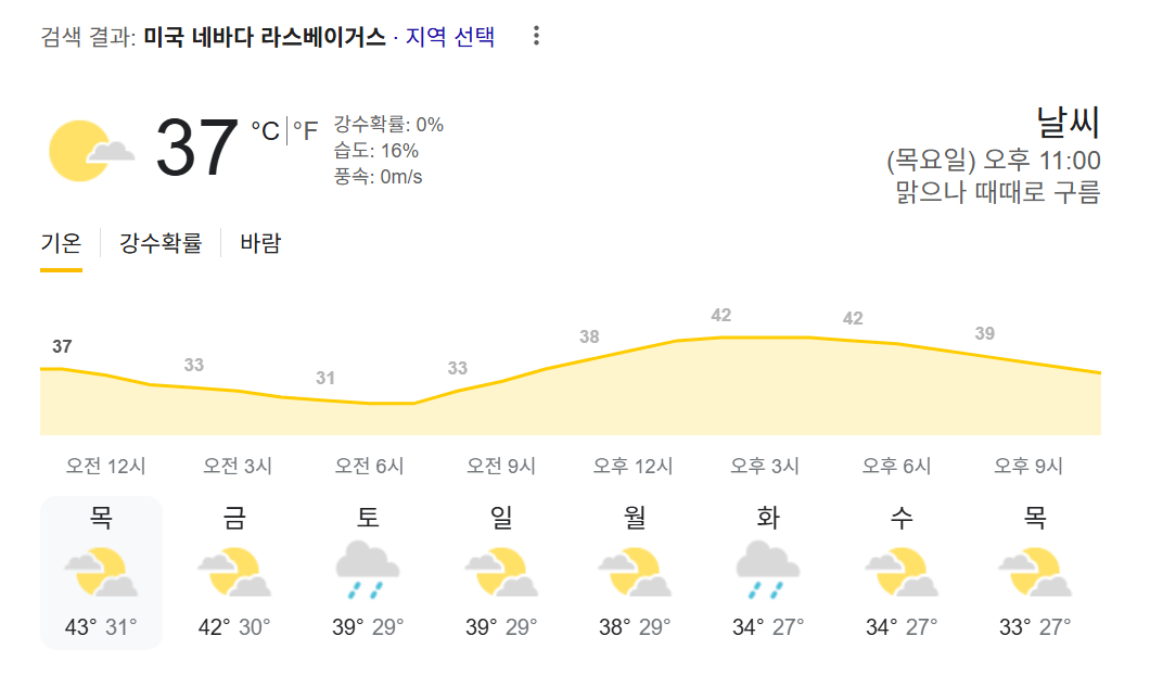 라스베가스에 처음 도착하자마자 든 생각은 바로 '너무 덥다'였습니다. 사막 한가운데 지어진 도시라 역시 너무 건조하고 덥더라구요.